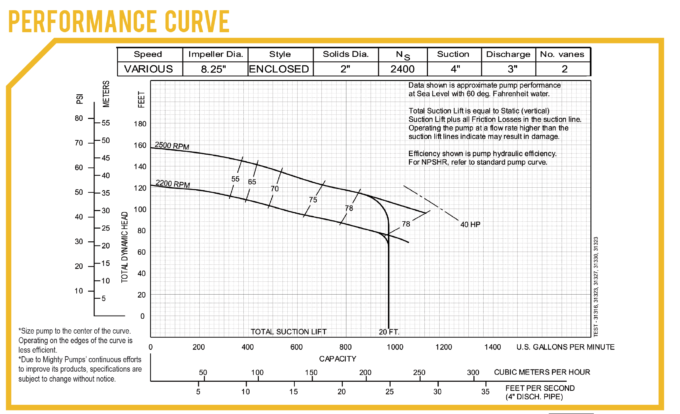 - Sewage/Wastewater Mighty Pumps™ have a recessed vortex impeller which make them capable of handling 2 inch solids for clog free performance